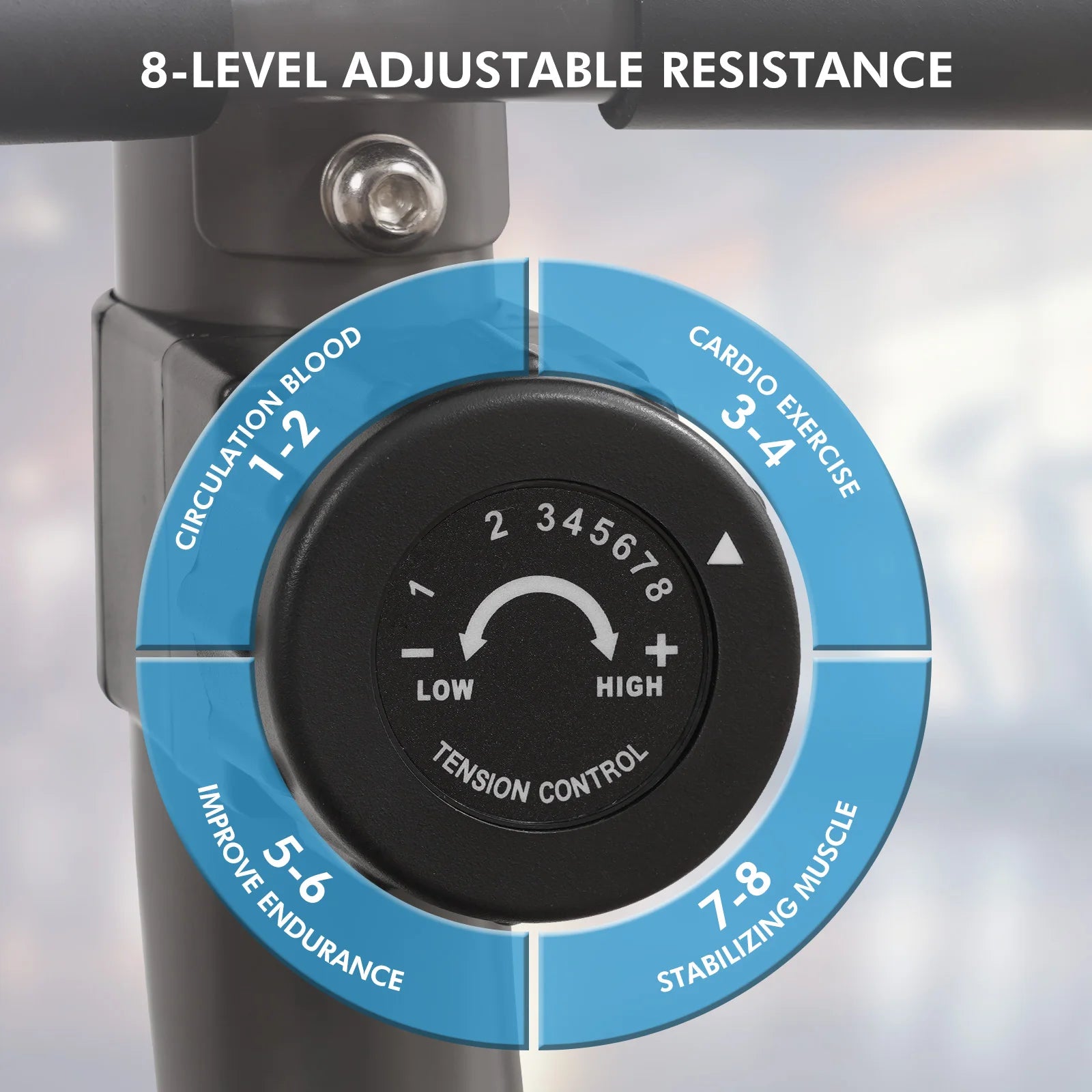 Adjustable Resistance Levels: Customize your workout with 8 levels of magnetic resistance, a recumbent exercise bike suitable for users of all fitness levels. Easily adjust the intensity to meet your training goals, ideal for gentle physical therapy and relaxing cardio exercise by recumbent exercise bike.